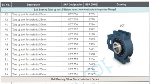 SKF UCT 204. to UCT 226 MM / inch